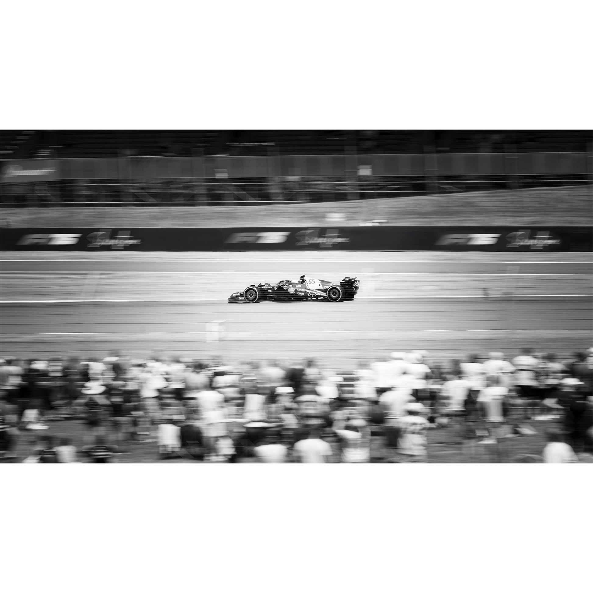 Captured from the Vale stand at Silverstone, fans watch with excitement as Lewis Hamilton races past in his Ferrari. This black and white print freezes the thrill and magic of the sport in a timeless moment. One of my favourite photos of Sir Lewis Hamilton, it’s a charming addition to any home—not just for Formula One fans!